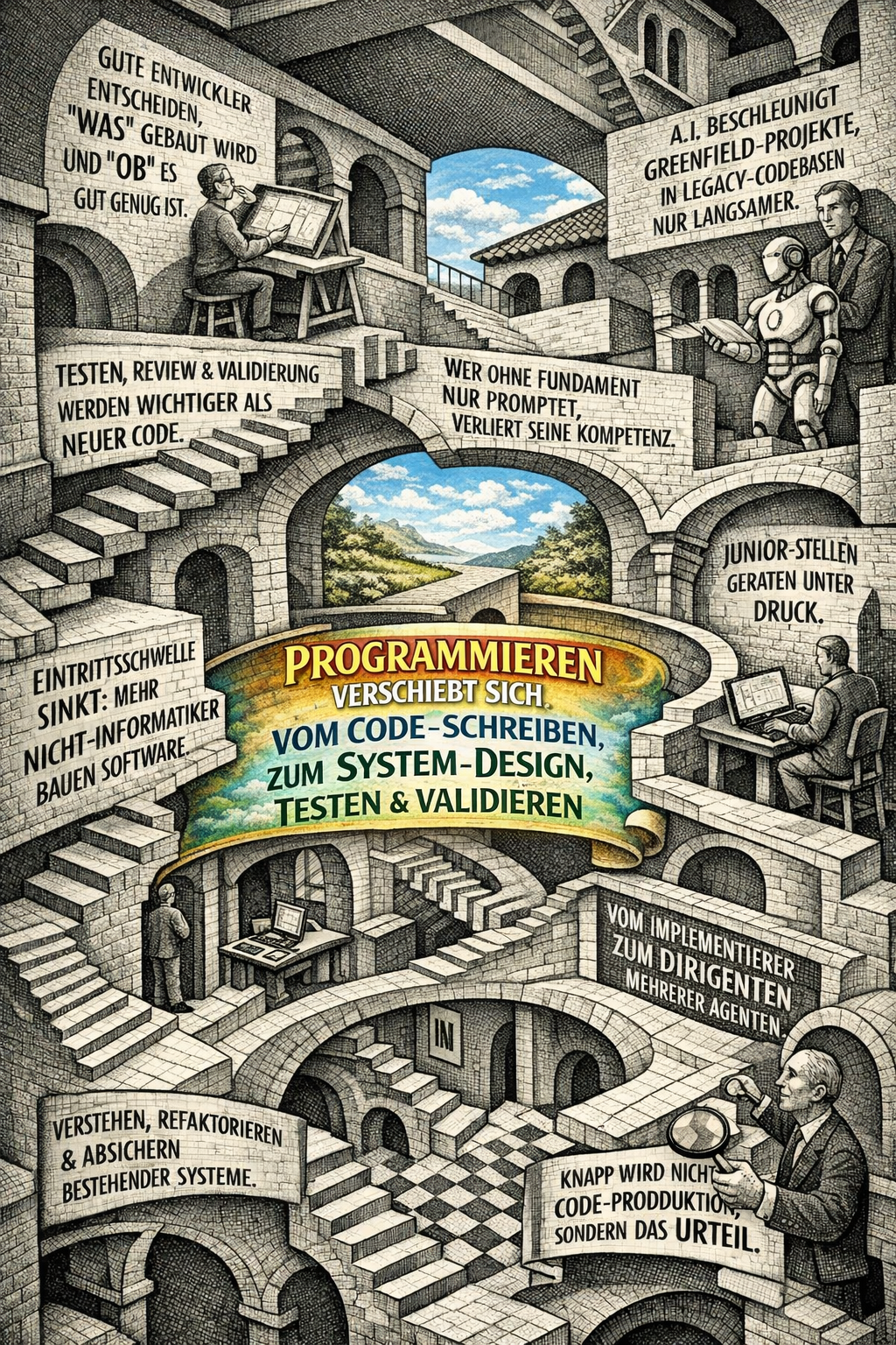 • Der Beruf des Softwareentwicklers verschiebt sich vom Implementierer zum technischen Dirigenten mehrerer Agenten.